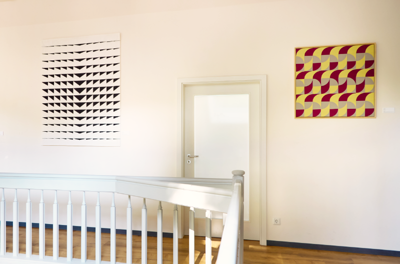 Like in many of my works you can find influences of abstract art forms of the 20th Century, namely Minimalism and Op Art in this quilt.